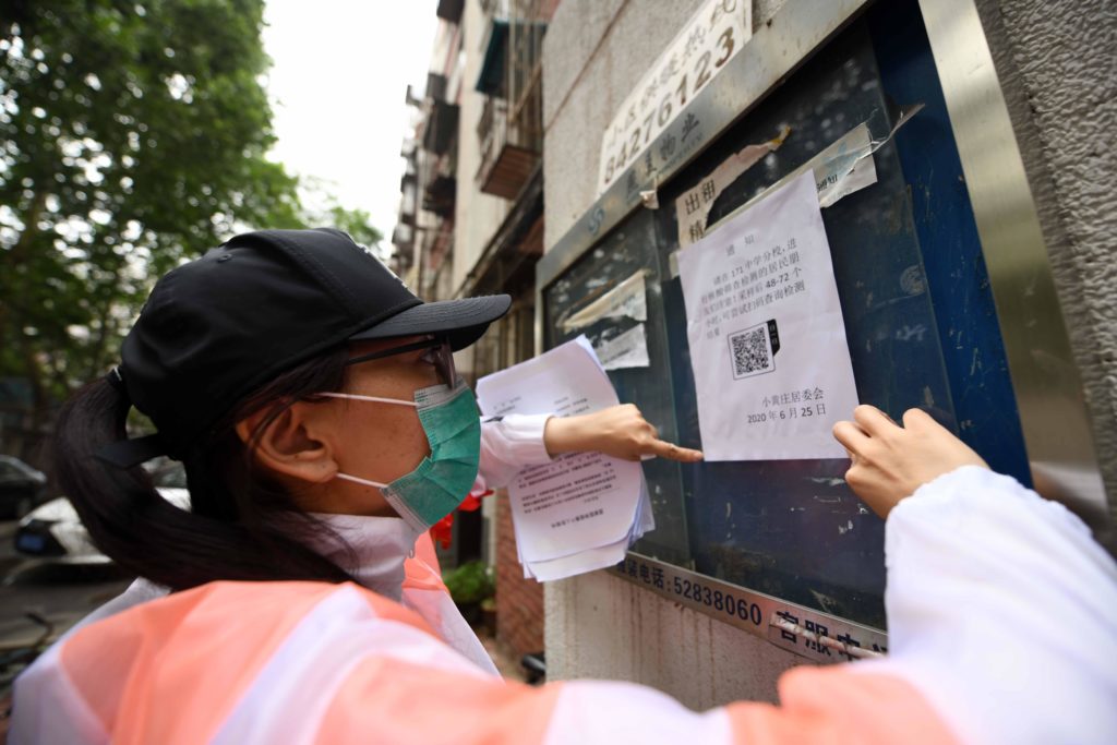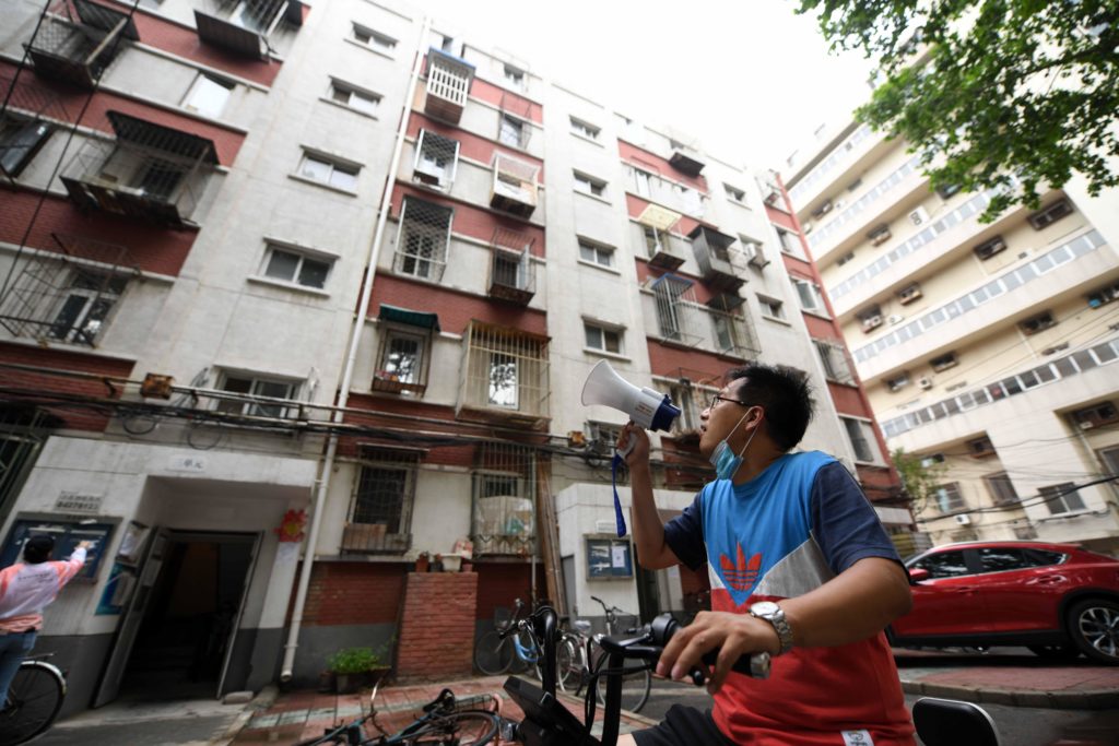 Shen Si y Qi Yang fueron a varias comunidades para informar a los residentes cómo verificar los resultados de la prueba de ácido nucleico lo antes posible. Además de colocar aviso en papel en todas las puertas del edificio, también usaron un altavoz para informar a todos en voz alta.