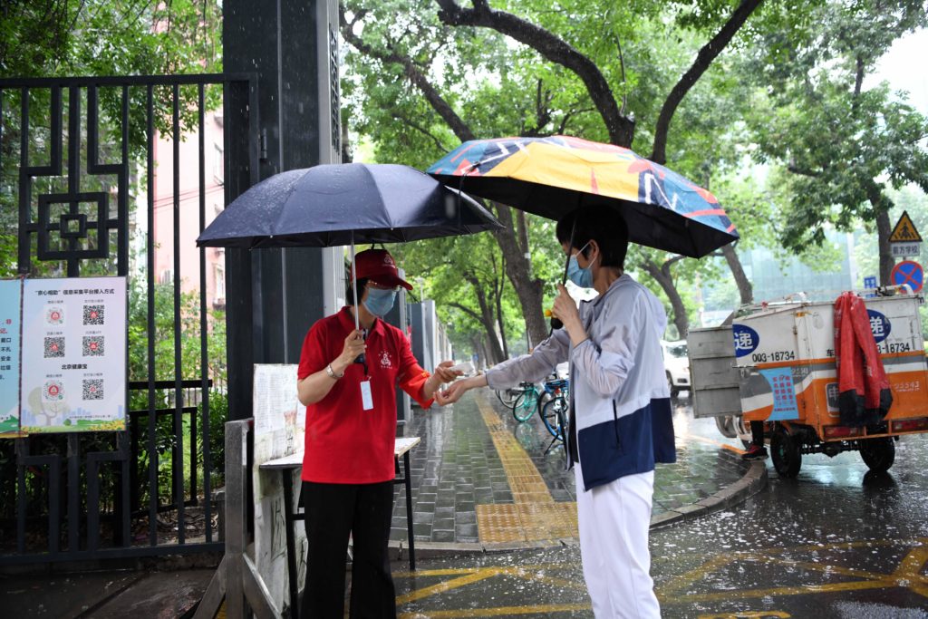 La Lic. Wang Lijun estuvo a cargo de la inspección de entrada y salida de los residentes en la puerta de la comunidad ese día y permaneció de pie durante varias horas. Estalló una tormenta por la tarde, y ella continuó trabajando bajo la lluvia.