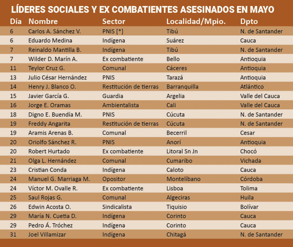 [2] Paz al liderazgo social. Indepaz, 26-05-2020.