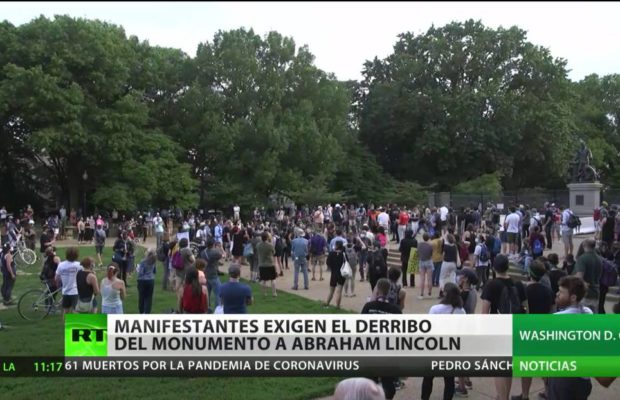 En Washington (EE.UU.) un grupo de manifestantes han exigido el derribo de un monumento a Abraham Lincoln. Más de 200 personas se han reunido en el parque Lincoln argumentando que la estatua que representa al decimosexto presidente del país norteamericano junto a un esclavo afroamericano liberado, pero arrodillado, es «racista». La manifestación se desarrolló de forma pacífica. Este tipo de protestas han surgido tras la muerte bajo custodia policial del afroamericano George Floyd en Minesota.