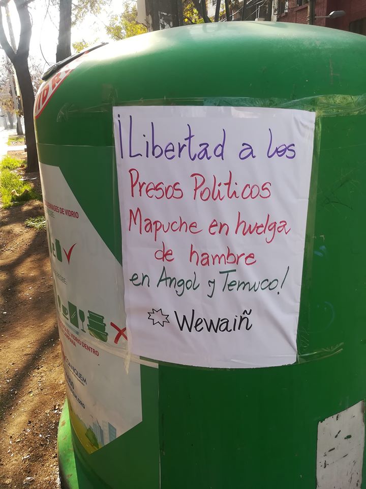 Hoy se cumplen 40 días de huelga de hambre de los presos políticos mapuche en la cárcel de Angol: Sergio Levinao, Juan Calbucoi Montanares, Victor LLanquileo Pilquiman, Juan Queipul Millanao, Sinecio Huenchullan Queipul, Freddy Marileo, Danilo Nahuelpi Millanao, Reinaldo Penchulef Sepulveda y Machi Celestino Cordoba, en las cárcel de Temuco. Parte de lo planteado por los prisioneros es que se cambien sus condiciones al interior de los penales y se otorgue el beneficio de cumplir sus condenas al interior de sus territorios, como lo contempla el Convenio 169 de la OIT. Los presos de la cárcel de Angol exigen además que deben ser excarcelados debido a la pandemia por coronavirus, porque no tienen las condiciones de seguridad sanitaria al interior de los penales.