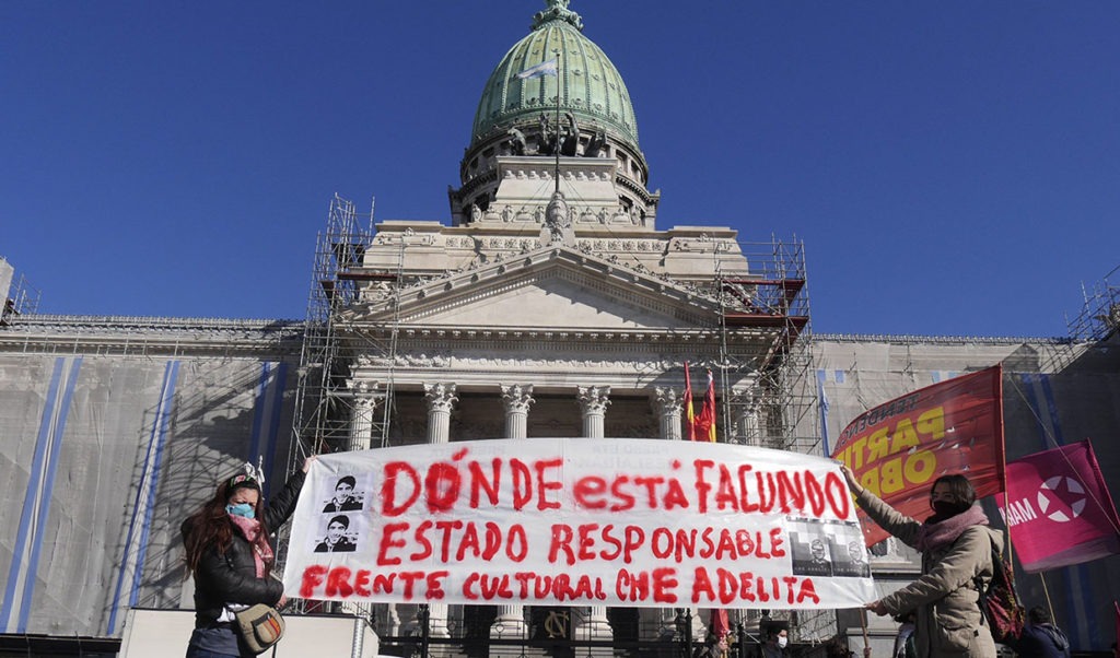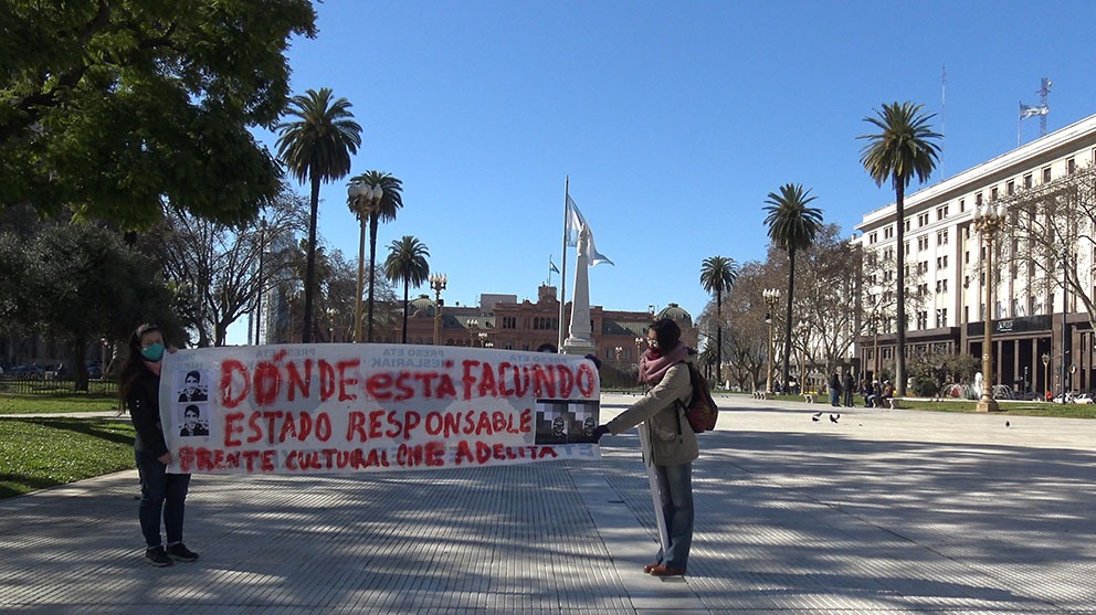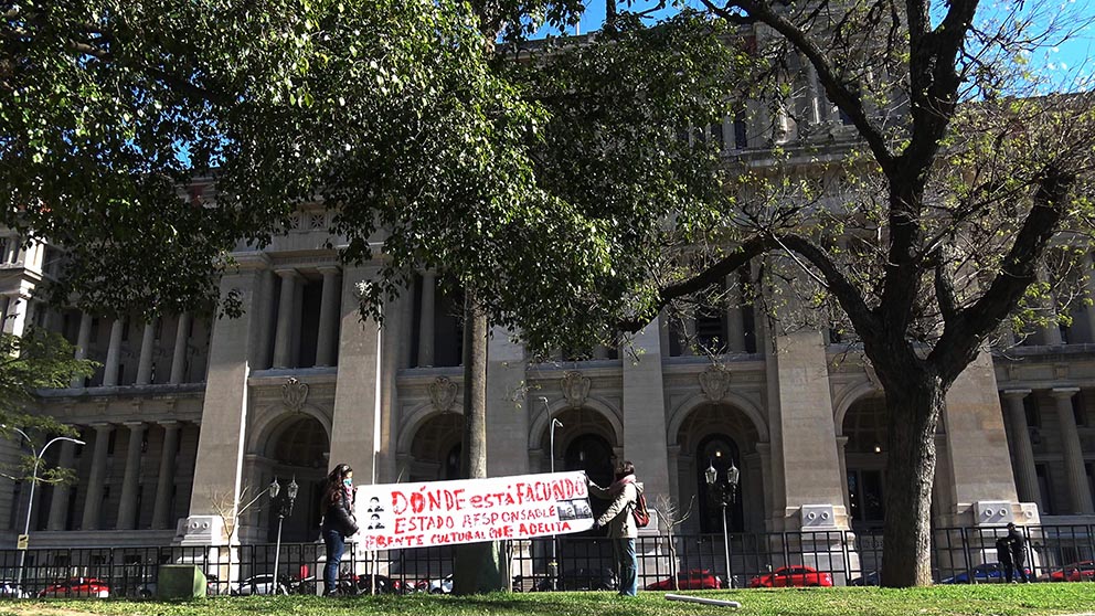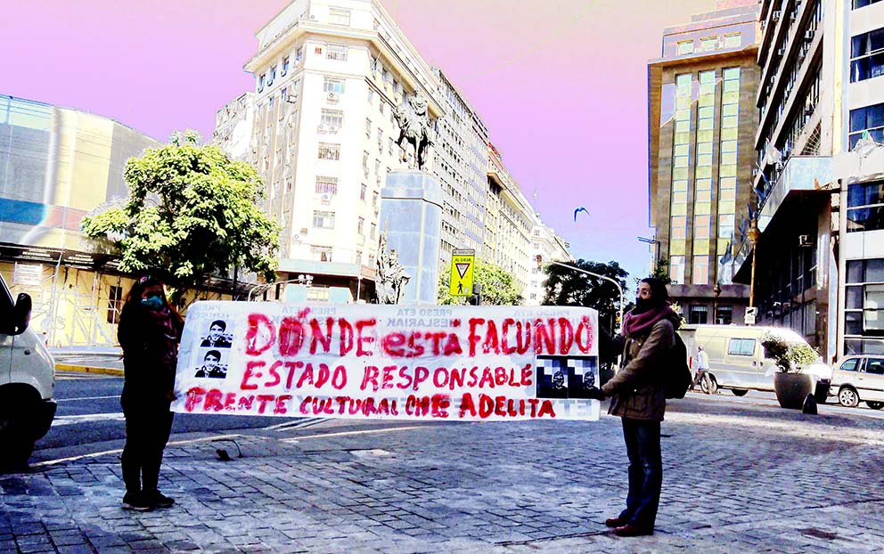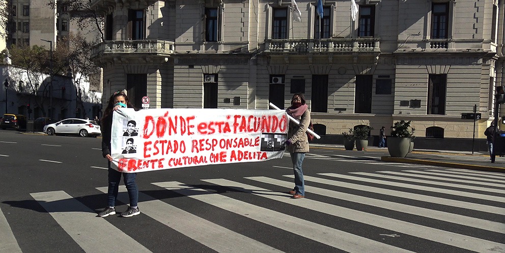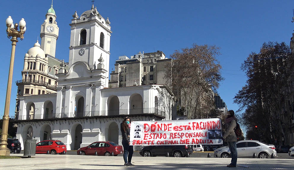 Formado hace un par de meses por militantes de la cultura popular, el «Che Adelita» volvió a dar cuenta de que el tiempo cultural que se viene va a utilizar la calle como escenario. Después de haber realizado dos actividades días atrás en solidaridad con Palestina (la primera en el barrio de Chacarita ) y luego, frente al Obelisco (por Palestina, los presos Mapuche y la exigencia de la aparición con vida de Facundo Castro), este jueves 30, en distintos puntos de la Capital y el Gran Buenos Aires, las y los «Che Adelita», levantaron carteles, cartulinas o pancartas con la pregunta que poco a poco se irá convirtiendo en consigna nacional: ¿Dónde está Facundo?-Estado responsable.