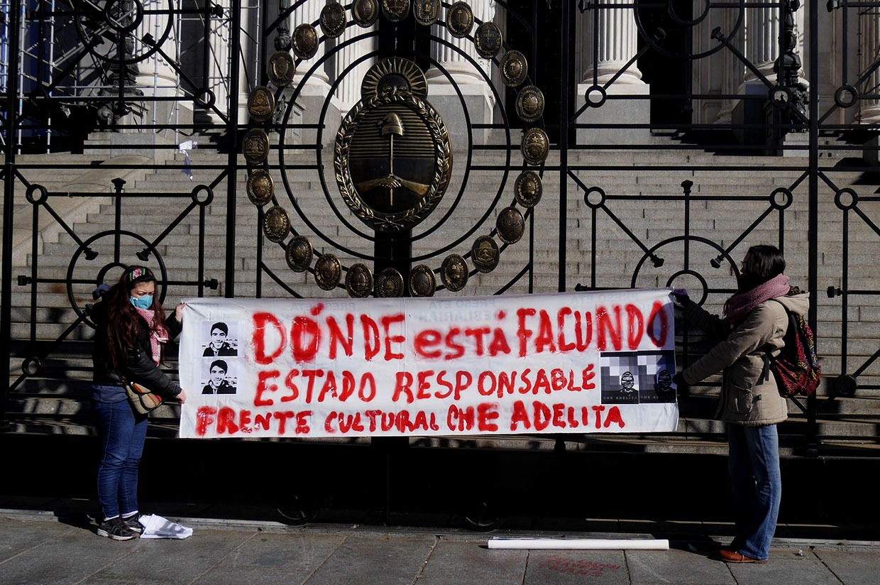 Formado hace un par de meses por militantes de la cultura popular, el «Che Adelita» volvió a dar cuenta de que el tiempo cultural que se viene va a utilizar la calle como escenario. Después de haber realizado dos actividades días atrás en solidaridad con Palestina (la primera en el barrio de Chacarita ) y luego, frente al Obelisco (por Palestina, los presos Mapuche y la exigencia de la aparición con vida de Facundo Castro), este jueves 30, en distintos puntos de la Capital y el Gran Buenos Aires, las y los «Che Adelita», levantaron carteles, cartulinas o pancartas con la pregunta que poco a poco se irá convirtiendo en consigna nacional: ¿Dónde está Facundo?-Estado responsable.