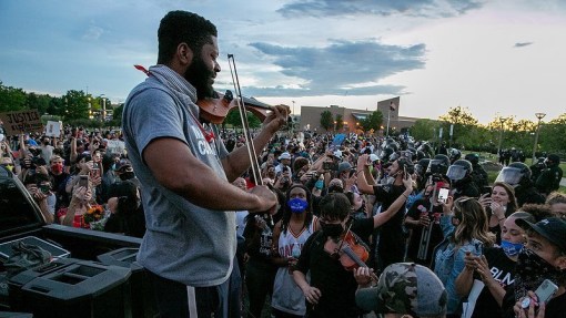 El sábado 27 de junio, músicos de todas partes de Estados Unidos llegaron a Aurora para una Vigilia de Violín y protesta pacífica exigiendo justicia para Elijah. Mientras tocaban, la policía antimotines atacó a las familias y simpatizantes con espray de pimienta. Los músicos audaces siguieron tocando.