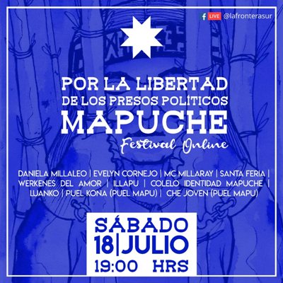 Los presos políticos mapuche llevan ya 74 días de huelga de hambre, en un contexto de invisibilización por parte de los medios de comunicación y con un gran debilitamiento en la salud de los comuneros, nueve bandas se convocaron en un Festival Online por la Libertad de los presos políticos mapuche» para visibilizar la grave situación que se vive.