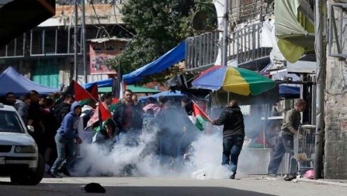 Los sol­da­dos israe­líes lan­za­ron gases lacri­mó­ge­nos, gas pimien­ta y gra­na­das de atur­di­mien­to, las cua­les alcan­za­ron espe­cial­men­te a los perio­dis­tas pre­sen­tes en la manifestación.