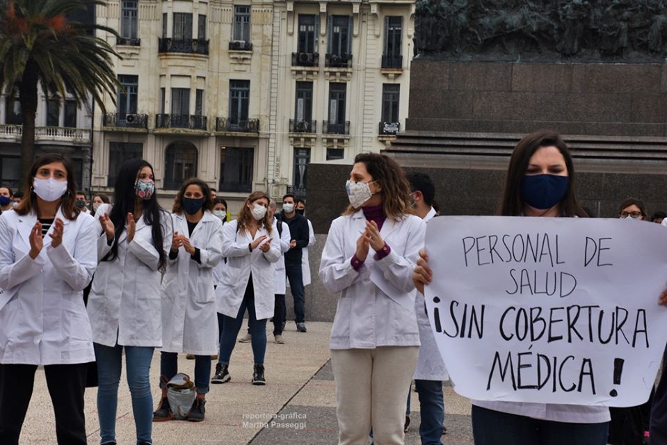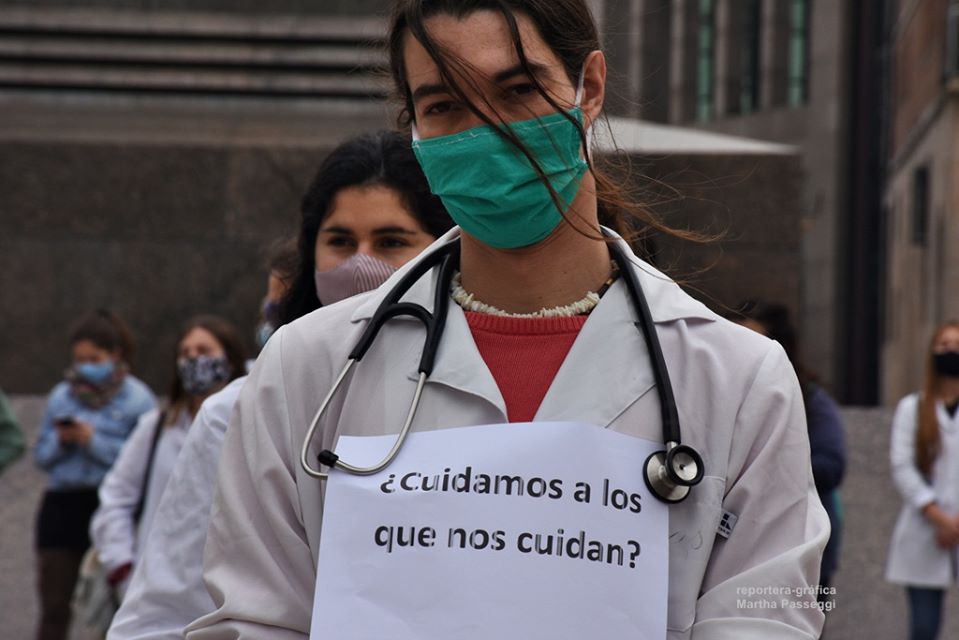 Practicantes internos de medicina se concentraron el 21/07/2020, a partir de las 10 horas, en la Plaza Independencia, frente a la Torre de presidencia.