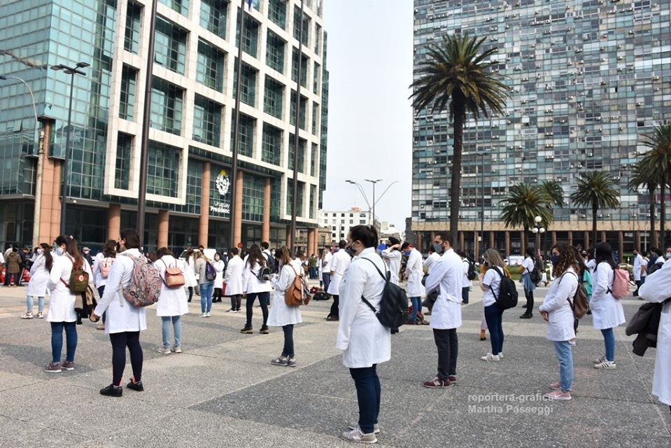 Practicantes internos de medicina se concentraron el 21/07/2020, a partir de las 10 horas, en la Plaza Independencia, frente a la Torre de presidencia.