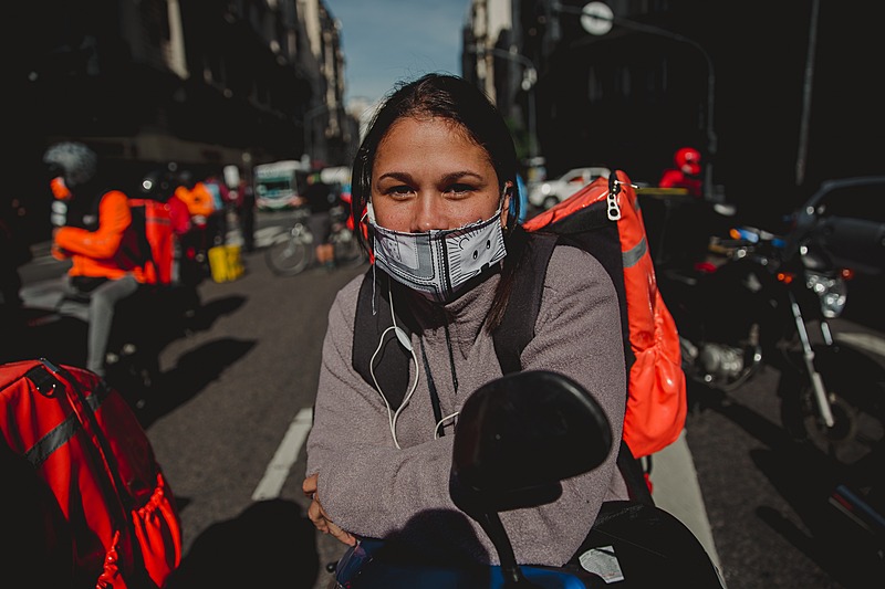Hace seis meses, Elias* trabaja como repartidor en Pedidos Ya y viaja diariamente de la ciudad de San Martín hasta Buenos Aires con su moto, poco más de 22 kilómetros. Son 12 a 16 horas de trabajo por día. «Aquí en Argentina, ninguna de las aplicaciones nos reconoce como trabajadores. Somos supuestos colaboradores», cuenta.
