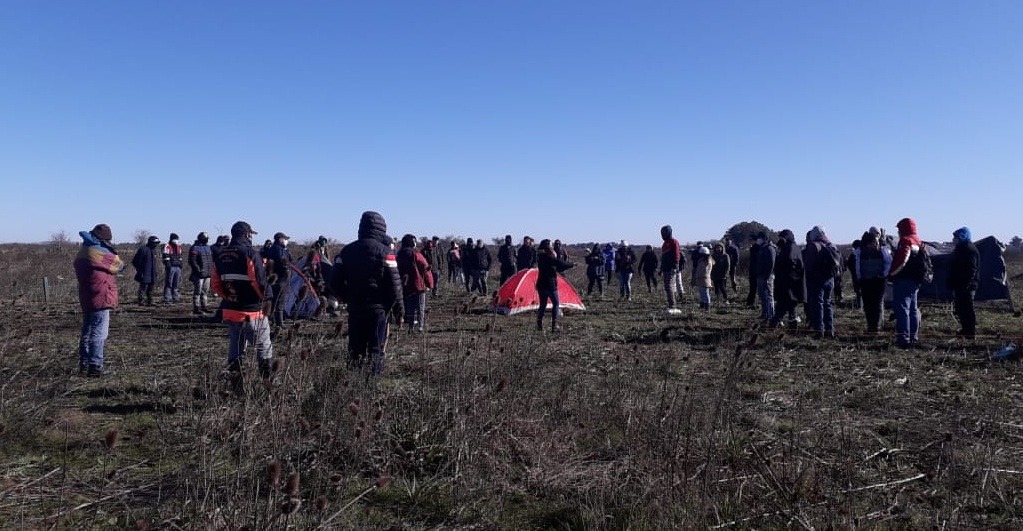 “La toma comenzó el lunes 20 de julio con un grupo de vecinos y vecinas desocupados que por motivos de la pandemia no pudieron pagar el alquiler y fueron desalojados – relata Leandro, referente del Barrio 20 de Julio, una parte de la toma – Se decidió ir a parar a un campo, el cual no está alambrado y sus dueños no aparecen hace más de 40 años, que no tenía ninguna utilidad y estaba sin uso. El mismo día llegó la policía y desalojó a esas familias. Estas accedieron a irse, pero al otro día nos reunimos con las distintas familias y volvimos a ingresar al predio de forma pacífica, y comenzamos a construir viviendas precarias de nylon. En el Barrio 20 de Julio somos aproximadamente 500 familias. Nos caracterizamos como vecinos unidos independientes y no estamos bajo ninguna bandera política. En el transcurso de los días se fue sumando un barrio nuevo, San Martín, y a los dos días se unió el Barrio la Unión”.