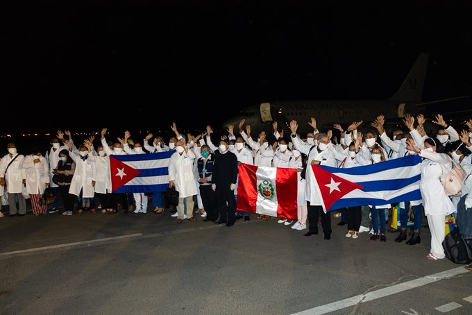 Siguiendo este recuento, a principio del mes de junio de 2020, llegó a Perú una brigada del Contingente Médico Internacional para contribuir al combate a la emergencia sanitaria producida por el coronavirus en ese país. Estaba integrada por 44 mujeres y 41 hombres, entre quienes estaban 50 médicas y médicos y 35 enfermeras y enfermeros.