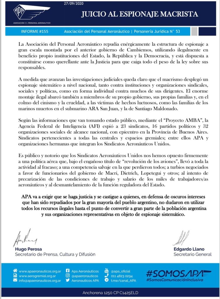 Con información propia y de Mundo Gremial, Info Gremiales, Noticias Gremiales, Gremiales del Sur, Enfoque Sindical, Línea Sindical, Corriente Federal de Trabajadores, Canal Abierto, ANRed, Estado de Alerta y Agencia ACTA y otras agencias.