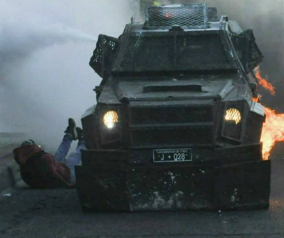 PACOS CRIMINALES │Santiago: Este Viernes 27⁄11 – Imagen del atropello de un joven por parte de un carro lanzagases patente J 028 de Carabineros de Chile en Santiago Centro.
