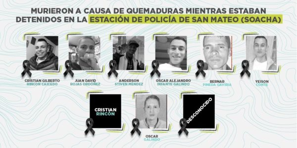 Según denunció del concejal de Bogotá Diego Cancino, la Policía no hizo nada por impedir que 9 de ellos murieran incinerados. Al contrario, hay indicios de que un agente entró y avivó el fuego con gasolina. Todo en medio del desespero y los gritos de las madres, hermanas y compañeras, quienes llevaban horas esperando, sin que se les permitiera entrar primero a visitarlos y después a rescatarlos.