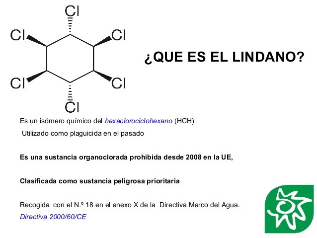 El hexaclorociclohexano (HCH), conocido comercialmente como «lindano», es una sustancia utilizada como pesticida agrícola y sanitario y prohibida por la UE desde 2008 por su toxicidad. La Agencia Internacional de Investigación del Cáncer (IARC) la considera cancerígena en seres humanos. Es, además, un tóxico persistente, muy volátil y bioacumulativo que penetra en los seres humanos por inhalación (al respirar), por vía cutánea (por contacto) y por ingestión (agua o alimentos contaminados). A pequeños niveles afecta al sistema nervioso, pero si la exposición es prolongada o reiterada tiene efectos en la sangre, los órganos y pueden producir alteraciones hormonales y de reproducción.