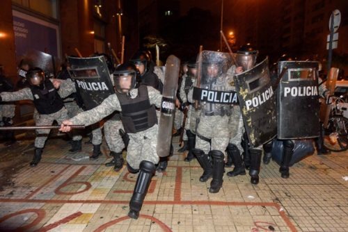 ⁃ El domingo a la noche en el Casino del Parque Rodó, luego de que terminara una cuerda de tambores, un grupo de choque de la Republicana con escudos y escopetas avanzó por Salterain.