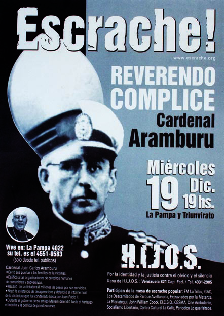 Para ese día 19 de diciembre, la agrupación H.I.J.O.S había convocado a un escrache al Cardenal Aramburu por su complicidad con las practicas genocidas de la pasada dictadura. El escrache iba a tener lugar en el barrio de Villa Urquiza en el norte de la Ciudad Autónoma de Buenos Aires. Ante la incertidumbre sobre si se iba a realizar o no, muchas personas concurrieron a la esquina de la avenida Triunvirato y La Pampa, donde referentes de la agrupación agradecieron la presencia pero informaron que por la seguridad de las y los manifestantes ante el reciente anuncio del estado de sitio decidieron postergar la movilización. El escrache se realizaría algunos meses después el fin de semana previo al 24 de marzo del 2002, en el marco de las actividad de repudio por un nuevo aniversario del golpe de estado.