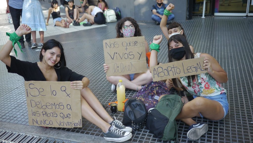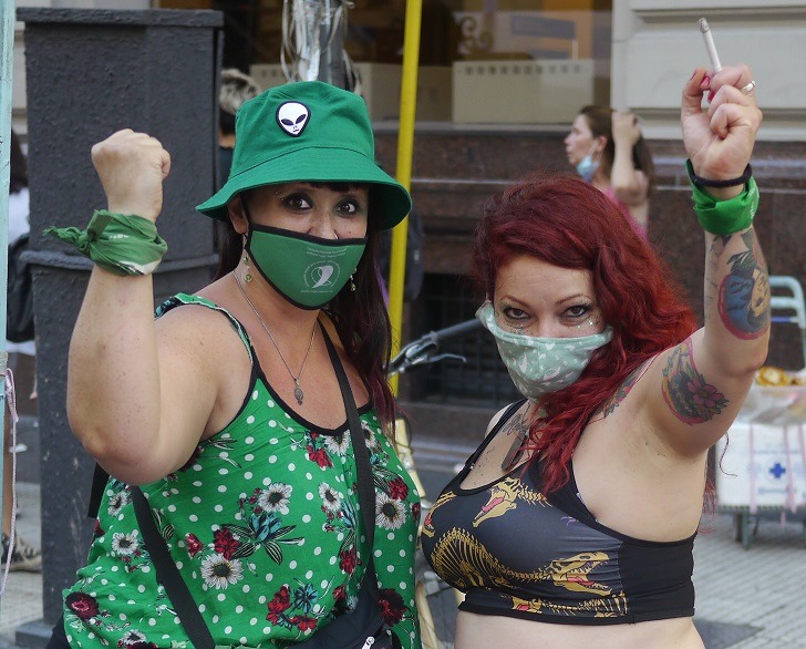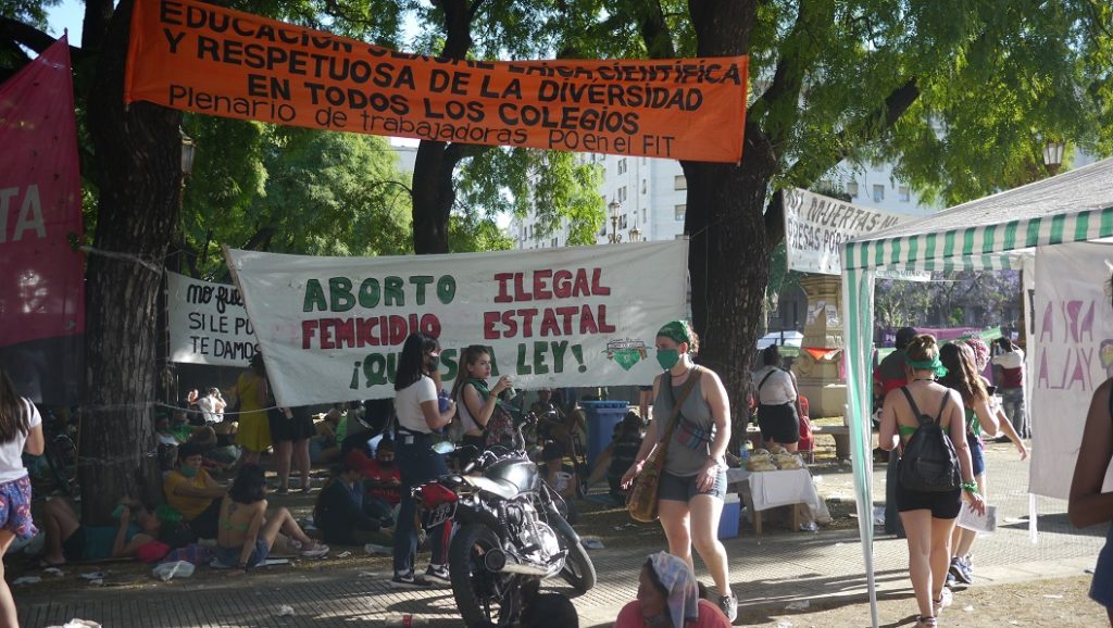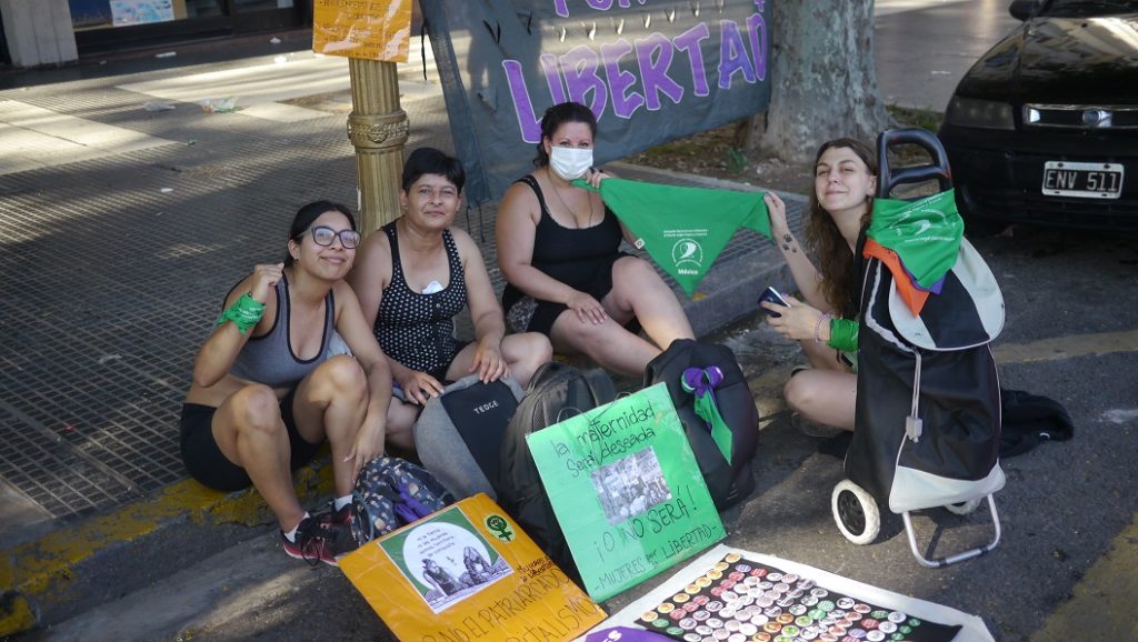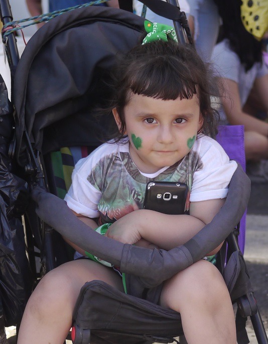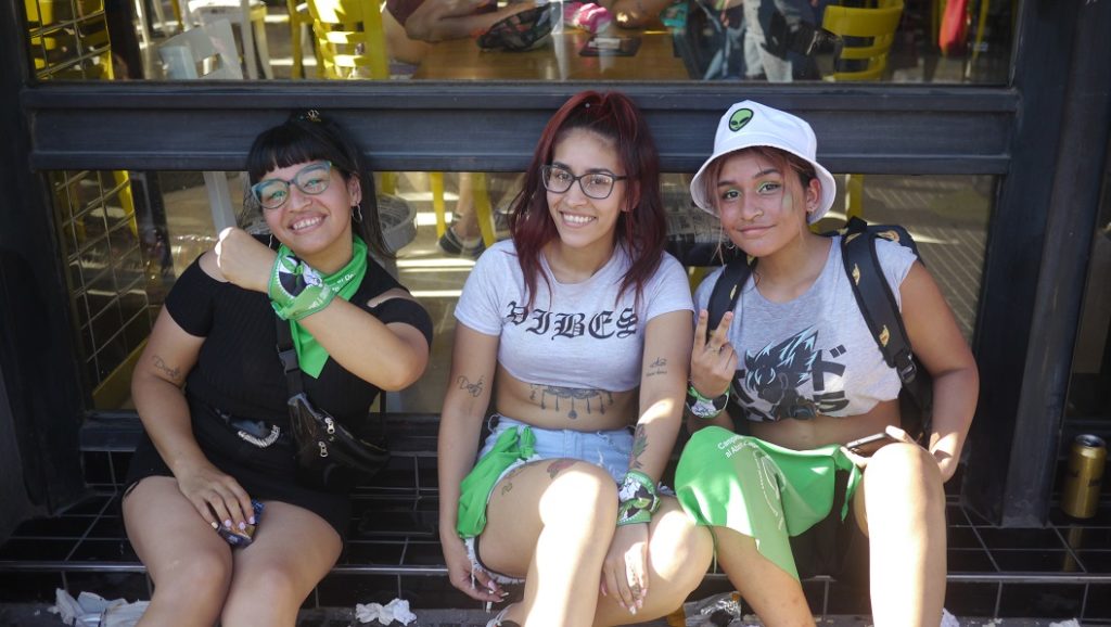 También, al otro lado de las vallas donde las pro ley del aborto eran mayoría, se encontraban quienes se identifican contra dicha medida y agitan banderas y pañuelos celestes «pro vida». Siempre acompañadxs de gente vinculadas a iglesias locales.