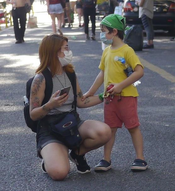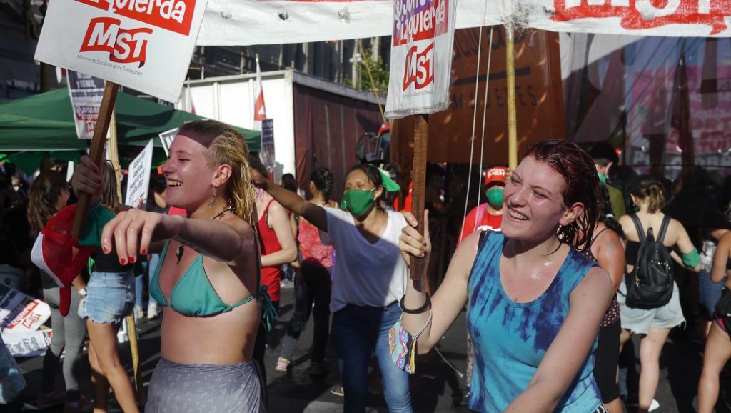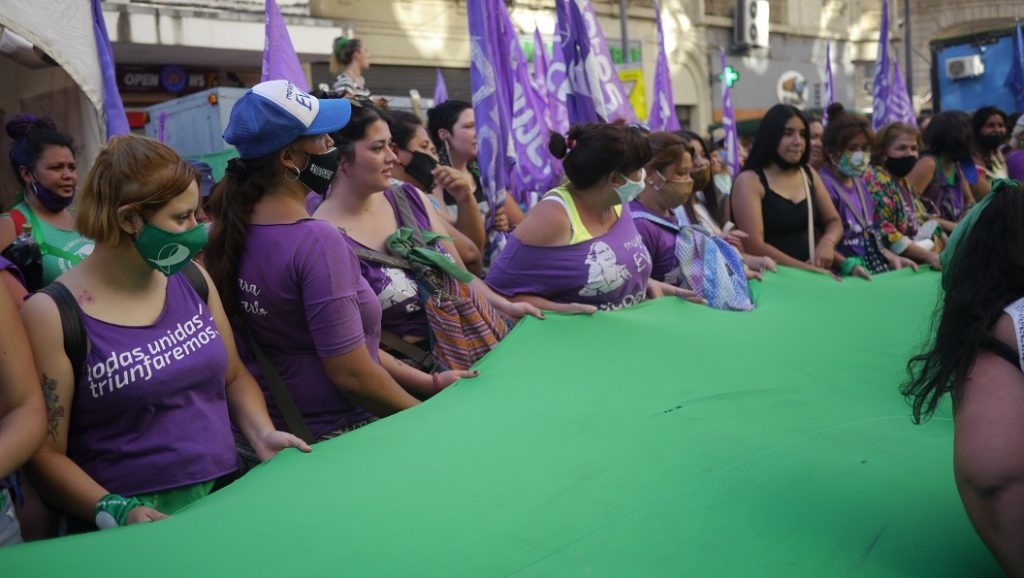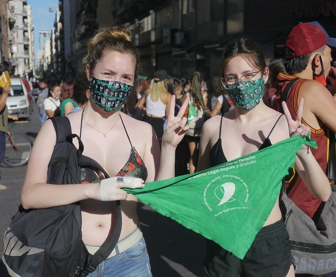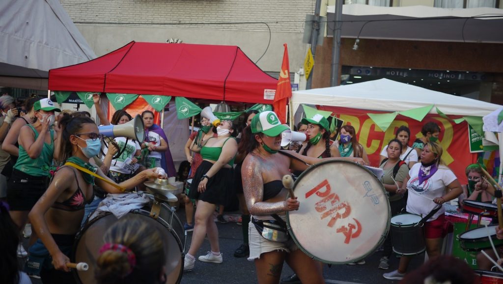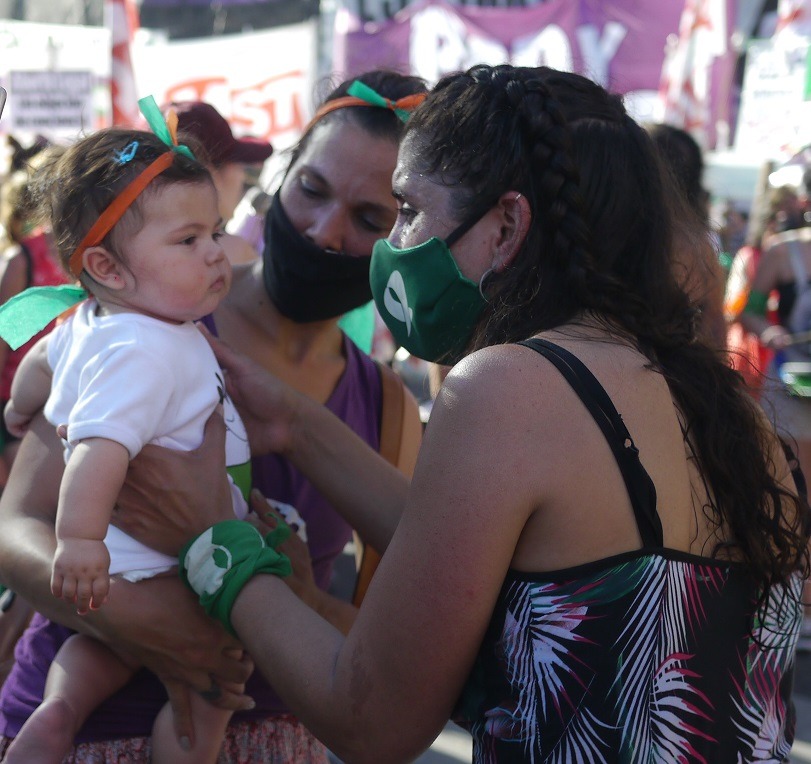 También, al otro lado de las vallas donde las pro ley del aborto eran mayoría, se encontraban quienes se identifican contra dicha medida y agitan banderas y pañuelos celestes «pro vida». Siempre acompañadxs de gente vinculadas a iglesias locales.