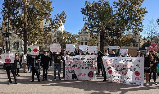 La suspensión de los desalojamientos en la Pobla de Vallbona tuvo una historia previa de movilizaciones. El 2 de diciembre la PAH convocó una marcha en Valencia con tres paradas estratégicas para señalar a los responsables: la sede del PSPV-PSOE (“160 desahucios diarios; ¿Al supuesto gobierno progresista no le preocupa que miles de familias se queden atrás?”); el Ayuntamiento de Valencia, gobernado por Compromís y el PSOE; la inmobiliaria Haya Real Estate y el BBVA, para negociar con los directores de las oficinas y pedirles una solución.