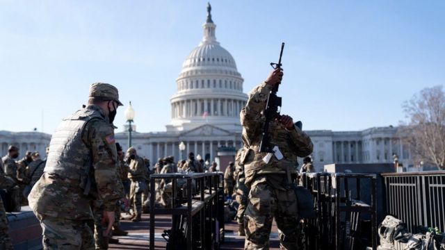 Se fue Donald Trump. Dejó un ingen­te des­plie­gue arma­do para la asun­ción presidencial.