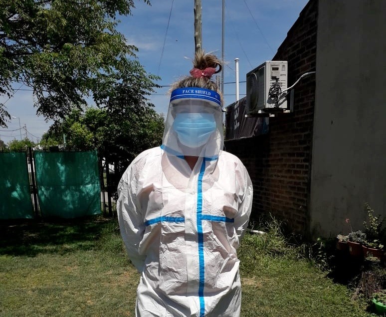 Nos dieron el equipito, el mameluco blanco, la máscara y un solo barbijo para los dos meses. La máscara era como muy impersonal, un nene de primer grado, de seis años, vos le vas con la máscara… entonces era el barbijo únicamente que lo iba cambiando yo. Tuve un lindo grupo de docentes titulares. Eran bastante abiertos a poder cambiar algún texto, alguna metodología de trabajo. La nena de segundo grado no estaba alfabetizada, los nenes de primero tampoco, a los nenes de sexto les costaba leer. No tenían lectura comprensiva, así que estuvimos trabajando en eso.