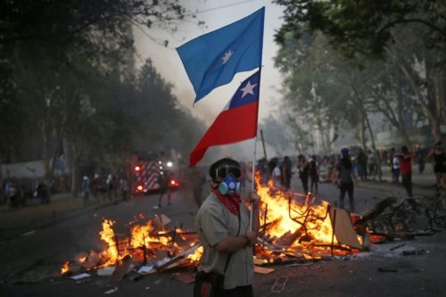 Nuevamente la Plaza de la Dignidad se convirtió en un aquelarre de gases, agua química y represión contra cientos de jovenes que aguantaron a pie firme la embestida de los esbirros de Piñera.