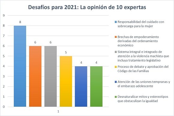 Este desafío particular, que va de cambiar mentes más que disposiciones o leyes, se posiciona como el sexto más repetido en nuestra encuesta. Otros, menos mencionados, pero relacionados con los anteriores completan una lista de 8 que fueron identificados al menos, por 3 de nuestras encuestadas.
