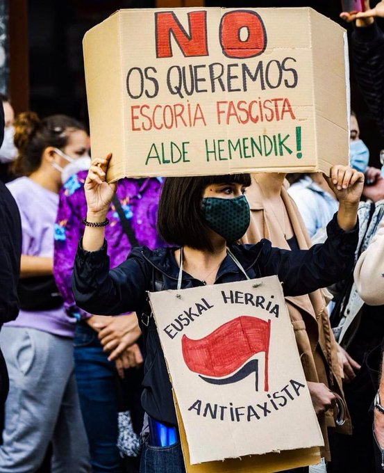 El fascista VOX, y los neofascismos más o menos encubiertos, PP y Cs, son débiles en Hego Euskal Herria en comparación con el Estado, pero las derechas de PNV y UPN, la pasividad del resto de fuerzas parlamentarias en combatir a los primeros, y el sobredimensionamiento mediático, multiplica su influencia política. No se quiere combatirlo en la calle, en la producción/reproducción, en la cultura…, que es el espacio decisivo para aplastarlo, mientras que el parlamento es un altavoz del fascismo por mucho que se le aísle. Sólo lo combaten en serio, incluso a costa de represión, las organizaciones, movimientos, sindicatos, colectivos, etc., de izquierda revolucionaria.