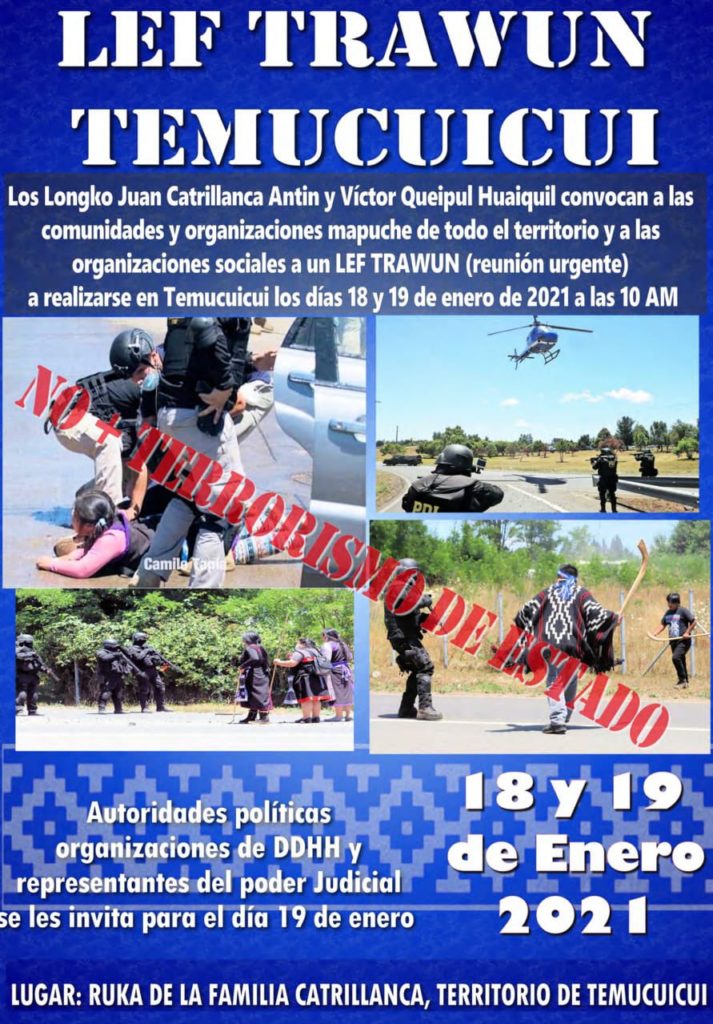 LEF TRAWUN EN TEMUCUICUI, FIN A LA INVASION Y VIOLENCIA ESTATAL CHILENA, AFIRMACION DE NUESTROS DERECHOS COLECTIVOS, LA SOBERANIA TERRITORIAL Y LA AUTODETERMINACIÓN MAPUCHE.