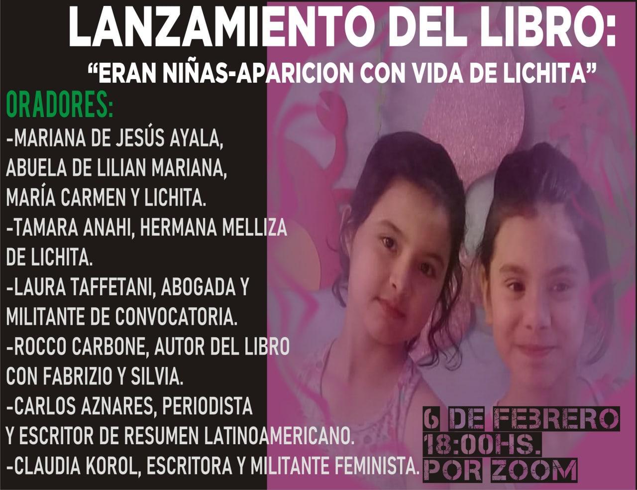 Lanzamiento virtual del libro «Eran niñas- Aparición con vida de Lichita. Por la plataforma Zoom, el próximo 6 de febrero a las 18 horas.