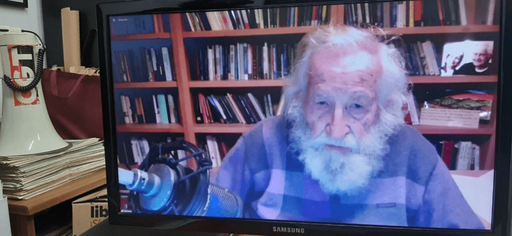 Dedicadas al Apoyo mutuo, el pilar hacia una nueva sociedad, las XXII Jornades Llibertàries de CGT-València se han iniciado con una entrevista por videoconferencia a Noam Chomsky; el filósofo y lingüista de 92 años, que se inició en el activismo social a los 11, continúa pronunciando conferencias y publicando libros; entre los últimos, Consequences of capitalism: manufacturing discontent and resistance, junto al geógrafo Marv Waterstone; Cooperación o extinción; y Climate crisis and the Global Green New Deal, con el economista Robert Pollin.