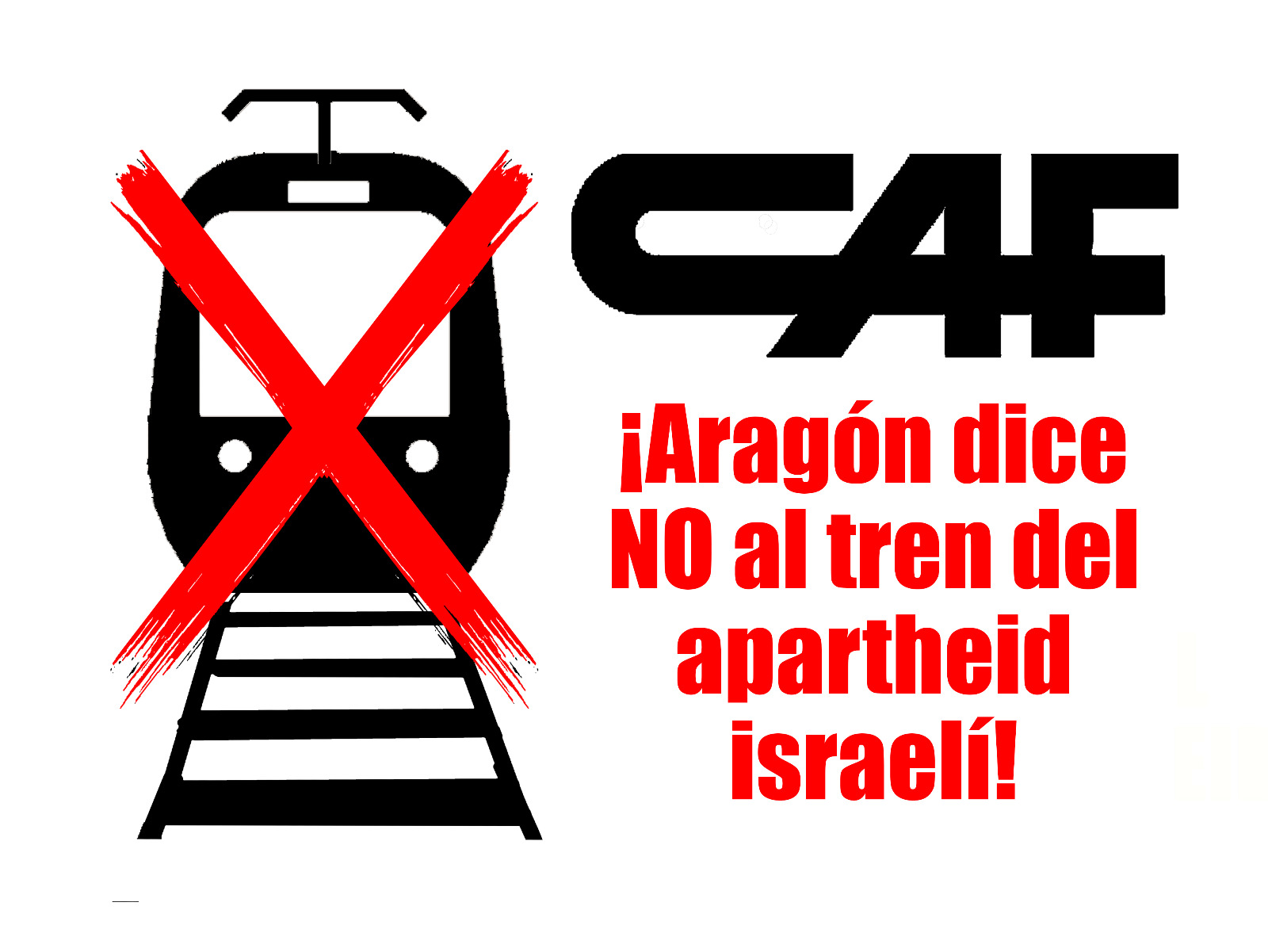 Esta es una llamada a organizaciones y colectivos sociales, políticos, sindicales y vecinales de Aragón para que expresen sin ambages su rechazo al desarrollo y mantenimiento por parte de CAF Zaragoza (Construcciones y Auxiliar de Ferrocarriles) del tren ligero en Jerusalén (JRL) proyectado por el gobierno israelí y que amplía una vez más la anexión ilegal de territorio palestino ocupado, vulnera los derechos individuales y colectivos de un pueblo que asiste, desde un sufrimiento difícilmente imaginable y ante la mirada cómplice de la sociedad internacional, a un intento constante de genocidio.