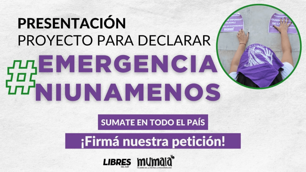La organización MuMaLá lanzó una petición a través de la plataforma Change.org/EmergenciaNiUnaMenos con el objetivo de sumas más apoyo de la sociedad civil. En este marco, la iniciativa ya cosechó más de 130 mil firmas.