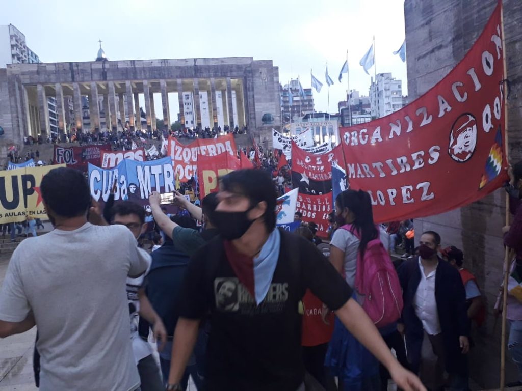 plaza Montenegro y recorrieron el centro por San Martín y la peatonal Córdoba hasta el Monumento. La restante columna partió de la plaza San Martín y marchó por Dorrego, San Luis, Buenos Aires y Córdoba para finalizar frente al escenario, ubicado en Belgrano y Estévez Boero.