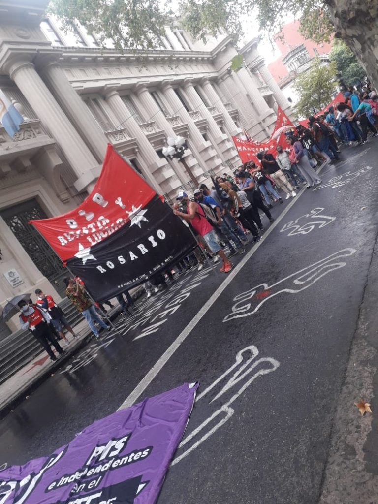 La pertinaz lluvia que cayó en la tarde no impidió que gran cantidad de rosarinos salieran a la calle a marchar por la Memoria, la Verdad y la Justicia, a 45 años del último golpe de Estado cívico-militar. Esta vez fueron dos las movilizaciones que recorrieron el centro para confluir en el Monumento a la bandera con un acto central que debió adelantarse por el clima.
