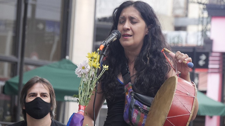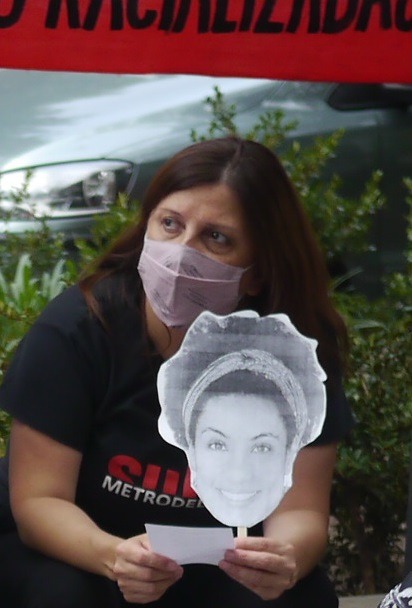 Artistas y cantoras rindieron homenaje a Marielle Franco esta tarde en la plazoleta cercana a la estacion de subte Rio de Janeiro
