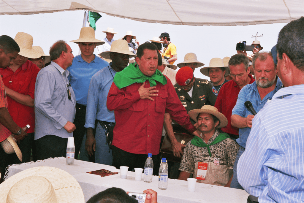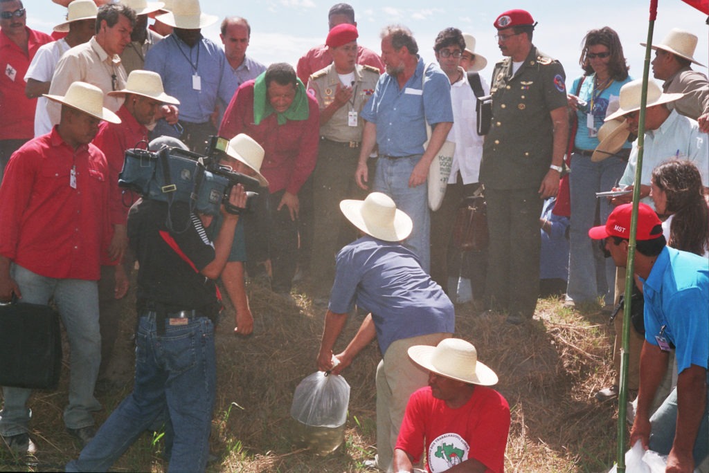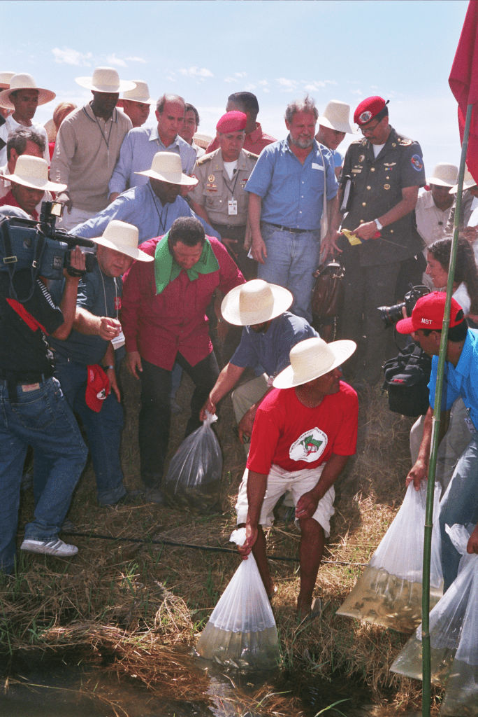 En este día de la desaparición física de nuestro comandante Hugo Chávez, adjunto las fotos de la visita de Chávez al asentamiento Lagoa do Junco en Tapes-RS el 30 de enero de 2005. La visita se realizó durante el Quinto Foro Social Mundial y fue parte de ceremonia que marcó la firma de una alianza entre el MST y Venezuela para el intercambio y reproducción de semillas.