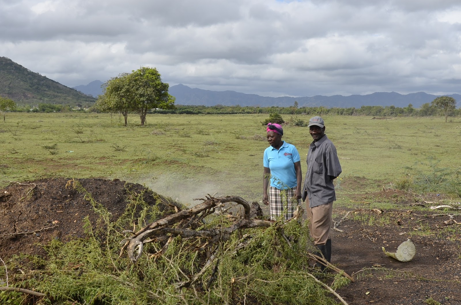 Christiane Fonrose y su esposo preparan carbón vegetal en las tierras apropiadas de Terrier Rouge.