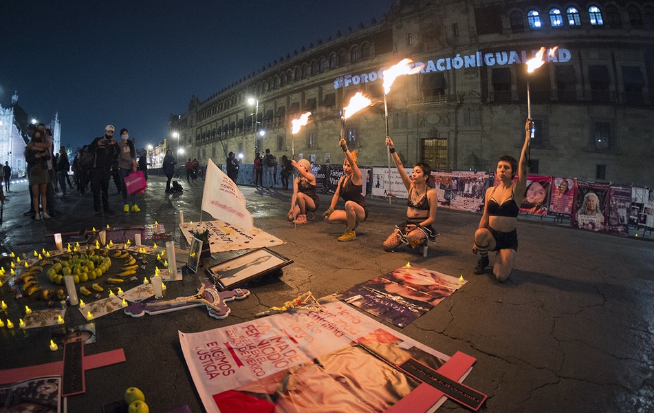 Duran­te toda la noche per­ma­ne­cie­ron fren­te a Pala­cio Nacio­nal dece­nas de madres y fami­lia­res de víc­ti­mas de femi­ni­ci­dio y des­apa­ri­ción, exi­gien­do jus­ti­cia para sus hijas y la bús­que­da de quie­nes no se sabe su para­de­ro. La vela­da de pro­tes­ta inclu­yó la pro­yec­ción de cua­tro mil nom­bres de muje­res ase­si­na­das en Méxi­co en la facha­da de la sede presidencial.