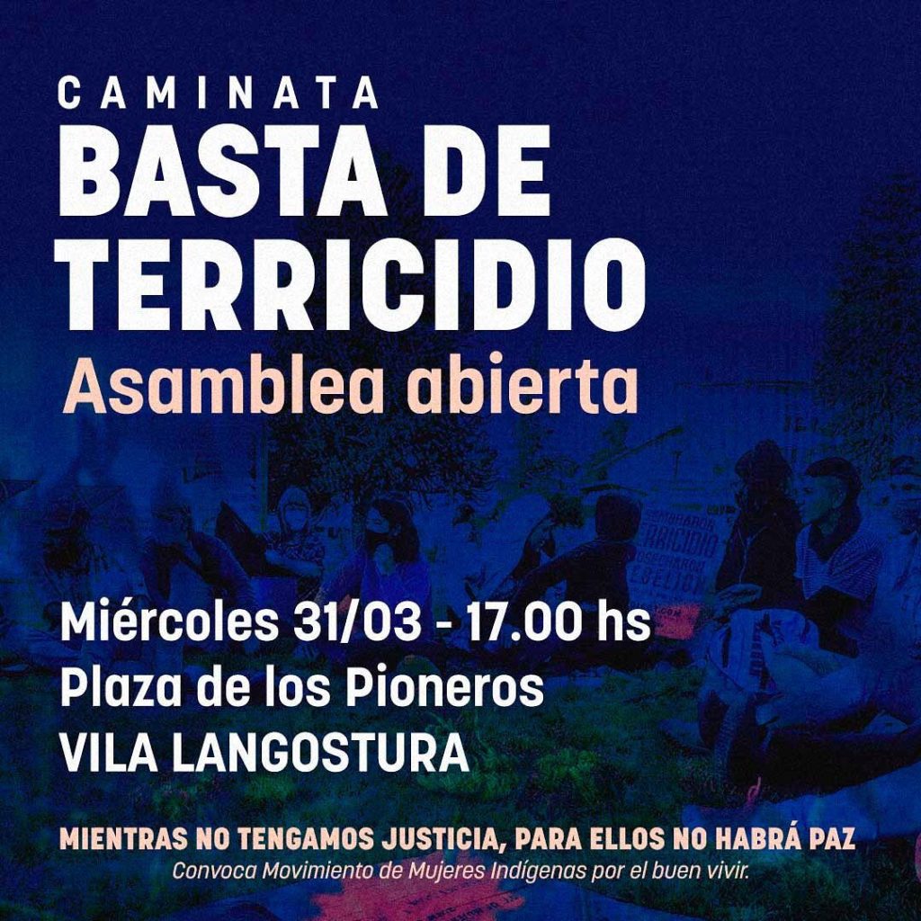Les invitamos a dar apoyo y caminar junto a nosotras en esta Caminata: #BastaDeTerricidio