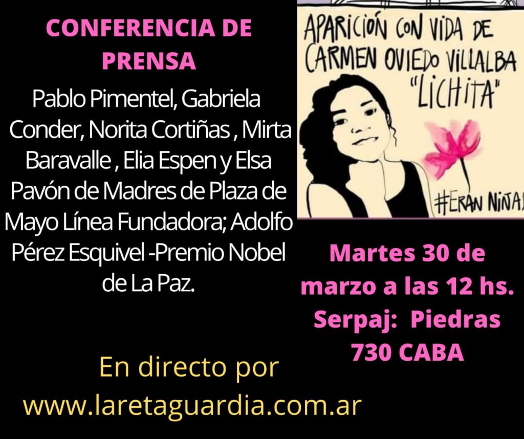 Firman: Campaña Internacional Eran niñas-aparición con vida de Lichita FogonerosVotamos Luchar REBELIÓN centro político y cultural. Libres del Sur Oscar Castelnovo ‑Agencia Para la Libertad SUTEBA Tigre Asociación Mutual Sentimiento Ni Una Menos La Sexta Resiste, RosarioEspacio Comunitario de La Paz y Esmeralda, RosarioMovimiento Patriótico Revolucionario Quebracho. CTD ANIBAL VERON. Corriente Nuestra Patria. Movimiento Estudiantil Liberación. UTR WirajkocHha.ATD Asamblea Trabajo y Dignidad.AJI 20 Abya Yala Joven Insurgente 20 de Diciembre.Multisectorial Contra la Represión BarilocheDepartamento de DDHH de los Pueblos Ate Rio Negro.Madres y Familiares de Detenidos Desaparecidos de Jujuy.Centro por los DDHH hermanos ZaragozaParaguay ResisteMovimiento de Inclusión PopularFrente Social Patria NuevaMovimiento Territorial Liberación ‑PCSecretaria y Movimiento Popular Nuestra AméricaFrente de Organizaciones en Lucha FOLMovimiento Villero Movimiento 26 de junio MP Aurelia TizónMovimiento Ecuménico por los Derechos Humanos MEDHCarlos López coordinador de la Agrupación Política Nacional Gaucho Antonio GilMovimiento Popular Pampeano DDHH, Foro Pampeano de niñez y adolescenciaEl frente 22 de AgostoGrupo Por Soberanía (GPS)-Línea fundadora Jaime Castillo Petruzzi Ex PP en PerúCasa de la Amistad Argentino-Cubana-Venezolana de La MatanzaMovimiento Teresa Rodríguez (histórico) Juan Carlos Pumilla y RaquelA.Barabaschi (querellantes juicio subzona 14-La Pampa)Unidad Antirrepresiva por los Derechos Humanos Docentes y estatales de base en el Plenario Obrero Popular.Frente de AcciónRevolucionaria FARRed de medios libres y populares de Chile AsociaciónSobrevivientes Familiares y Compañerxs de Campo de MayoAsociaciónCivil Moreno por la MemoriaChavismo SURMerendero Lucas Decima del barrio La Ripiera, Garupá, Misiones CTA BahíaBlancaFamiliares y amigos de Bocha Regoasesinado asesinado por miembros de prefectura el 12/8/18 MTL RebeldeFamiliares de detenidos-desaparecidos por razones políticas y gremiales e H.I.J.O.S en la RED por la defensa de los DD HH de Salta Mirta Acuña de Baravalle Co-fundadora de Madres y Abuelas de Plaza de MayoLínea Centenario de Esquel de Patagonia Argentina.Abelardo Martín-Cantautor MilitanteFrente de la ResistenciaCátedra Americanista FFYL UBANuevo MAS ChacabucoFrente de Liberación Nacional y Social Regional Salta,ArgentinaBibiana Marta Reibaldi DNI 12394923, ntegrante de Historias DesobedientesAsociación civil El ArcaFundación Padre Luis FarinelloEx presas y presos políticxs, hijas e hijos, ex exiliadas y exiliados de CórdobaPCT. Regional RosarioMovimiento Plurinacional de Mujeres y disidencias de Capilla del Monte CórdobaPCT Regional Rosario.Frente de Liberación Nacional y Social Regional Salta ArgentinaColectiva Feminista Las AzucenasFundación CHE PIBE Campaña Somos Plurinacional Regional La Plata, Berisso y Ensenada.H.I.J.O.S zona oesteMargarita Noia Secretaria de DDHH de la CTA‑A CapitalGustavo Martínez Sec. Gral.CTA Autónoma, Provincia Santa Fe.Justicia ya! La PlataMaríaVictoria Moyano Nieta Restituida por Abuelas de Plaza de Mayo. DNI 36494204Casa Cultural INGARebelión Popular RosarioClaudia Agüero de la Coordinadora Contra la Impunidad Policial CapitalAndrea Benites-Dumont ‑6219140 -(Casa pueblos)-Madrid . EspañaCTA A Nacional Laura Marrone. Ex legisladora CABA FITU. Izquierda SocialistaComisión por Memoria y Justicia Masacre de La PlataJuan Carlos Giordano , Diputado nacional FITU Izquierda socialistaPTS Santa FeGuillermo López DNI 6385003Secretario de Cultura Indígena Consejo FUTA TRAWN Comunidad Mapuche, Organización Indo americana reconocida por ONU e IGJLiliana Furió DNI 16376287Alicia Bernal 12524924, querellante causa Guerrieri , RosarioDante Patrignani Secretario DDHH CTA BahíaBlancaAsociación de Derechos Humanos Coca Gallardo-de SaltaComisión de Familiares de Detenidos-Desaparecidos por Razones Políticas y Gremiales.Mesa de Derechos Humanos de Salta PRML-Salta. Cuba-MTR Asamblea Feminista Abolicionista La PlataEncuentro Militante Cachito Fukman.Campaña Abolicionista NacionalCampaña Abolicionista Nacional ni una Mujer más víctima de las redes de prostitución-CABACampaña Abolicionista Neuquén-Kasasandrxs Feministas Abolicionistas libertarias-Carmen Capdevila. Estela de la Cuadra DNI. 5.262256Organizaciones Libres del PuebloMaría Centeno, Artista Visual Colectivo La Araña, Feminista VenezuelaMiguel Guagnini DNI8432302 José Güeso SayagoIzquierda Latinoamericana SocialistaDefensoría de génerosAgrupación de Mujeres y Disidencias Beatriz Perosio.Partido Humanista de Perú.Falcón vocero político y Secretario Nacional de Relaciones internacionales del Partido Humanista Peruano, Miembro de la COPPPAL y del Foro de São PauloMaría Isabel Mazo del Colectivo por la Paz en Colombia (México)Marcela SantuchoVillarreal ‑Escritora e hija del Comandante Mario Roberto Santucho.Emilia Vassallo mamá de Pablo Paly Alcorta asesinado por la policía.Gerardo Ernesto Barbosa DNI 17593603.Agrupación La Violeta Alberto ÁlvarezReal DNI: 11.554.452.Daniel Berretoni periodista del programa radial»Contra la Pared»Alejandro Rusconi Movimiento Evita Carlos Aznárez, periodista, Resumen Latinoamericano. Norman Briski, Actor. Roberto Perdía, abogado.Jorge Falcone, documentalista María Torrellas, documentalista OLP-Resistir y Luchar Frente Cultural Che Adelita. AntónCastro Partido Comunes (México) Campaña Internacional Simón Libertad Riqui Zarra, Artistas Autoconvocados de Oran, Salta ‑ArgentinaOrganización para la LiberaciónArgentina (O.L.A)Gabriel Mellibosky delegado no docente (ATE) de la facultad de psicología UNCPRT Partido Revolucionario de los TrabajadoresOlegario Chamorro Movimiento 19 de DiciembreDaniel De Santis Movimiento 19 de Diciembre.Secretaria de DD.HH. de la facultad de Humanidades de la Universidad Nacional de Salta ‑UNSAOscar Edmundo CorbalánDNI: 18.026.406Cultural para la Liberació