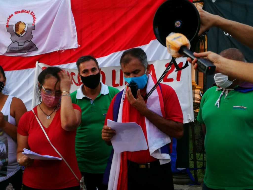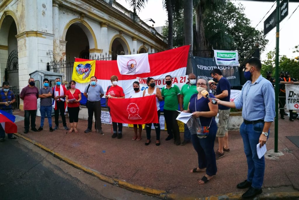 Trece sindicatos privados y públicos realizaron una conferencia de prensa en las inmediaciones del Congreso con un pliego de demandas del sector y la consigna #QueSeVayanTodos.