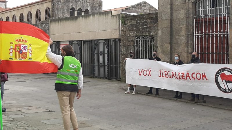El Comité Antifascista de Compostela ha denunciado en su Twitter el “proyecto ultraliberal y españolista” que representa Vox, “contrario a los intereses de la clase trabajadora y Galicia”. “No podemos permitir que ocupe con impunidad las calles, divulgando su programa fascista. ¡Firmeza y unidad antifascista!”, añade este grupo.