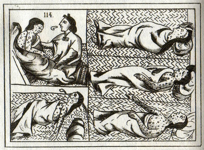Indígenas enfermos de viruela. Ilustración del Códice Florentino