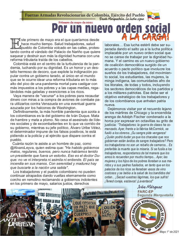 1º de Mayo de 2021: Por un nuevo orden social - farc-ep.net