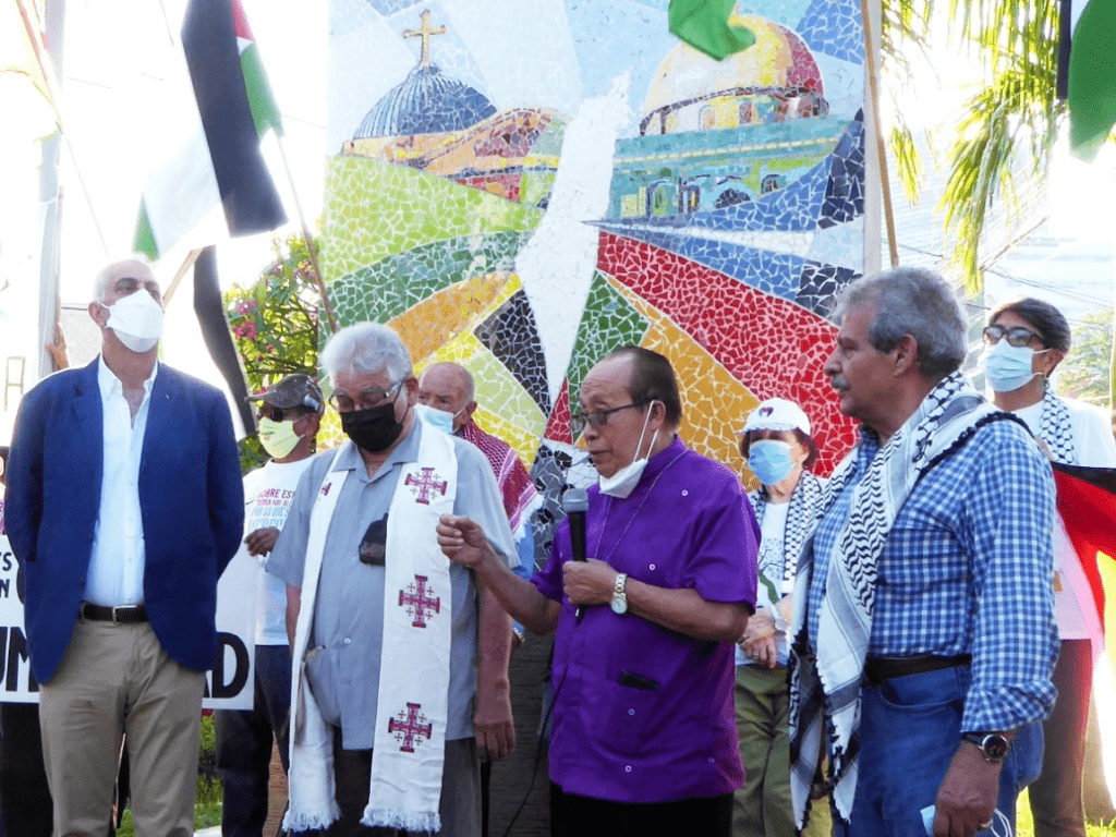Entre el medio centenar de asistentes pudimos contar con el embajador palestino en El Salvador Marwan Burini, con Simán Khoury, Presidente de la Unión Palestina de América Latina y diputado del parlamento palestino en la Diáspora, el compañero Padre Tilo Sánchez en recuperación de sus rodillas operadas, el Obispo Medardo Gómez de la Iglesia Lutherana y Magda Baltodano, Secretaria de la Asociación Salvadoreña Palestina ASP.