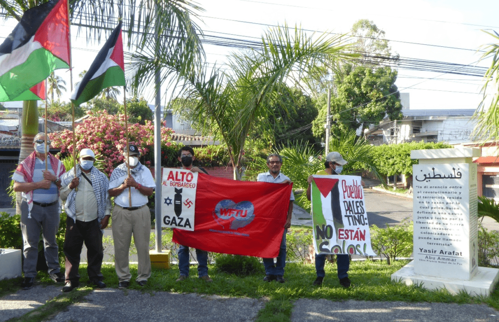 El Aniversario 73 de la Nakba (la Catástrofe), la expulsión criminal y sangrienta de gran parte del Pueblo palestino de su Tierra el 15 de mayo de 1948, en San Salvador la conmemoramos en la Plaza Palestina con un Plantón de repudio de los crímenes sionistas y de Solidaridad con el Pueblo Palestino y su heroica Resistencia.