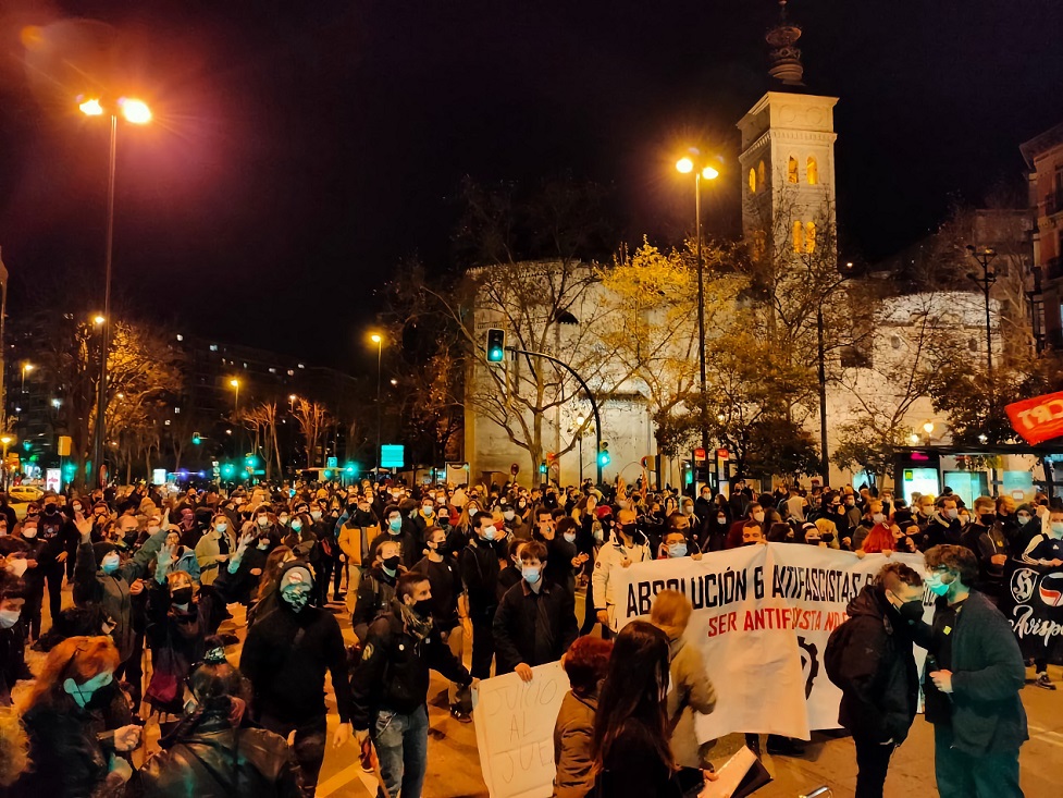 Zaragoza”, condenados, cuatro a seis años de prisión y dos al pago de 11.000 €uros, por “el montaje policial” tras la intervención de la Policía en una protesta frente al mitin de Vox en Zaragoza dentro de las elecciones de enero de 2019