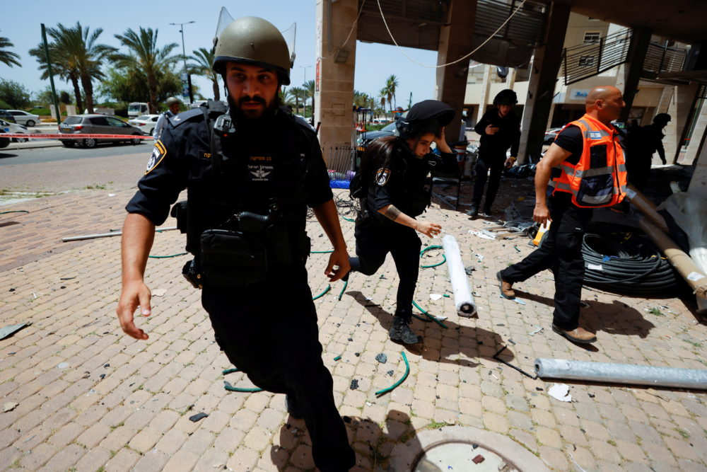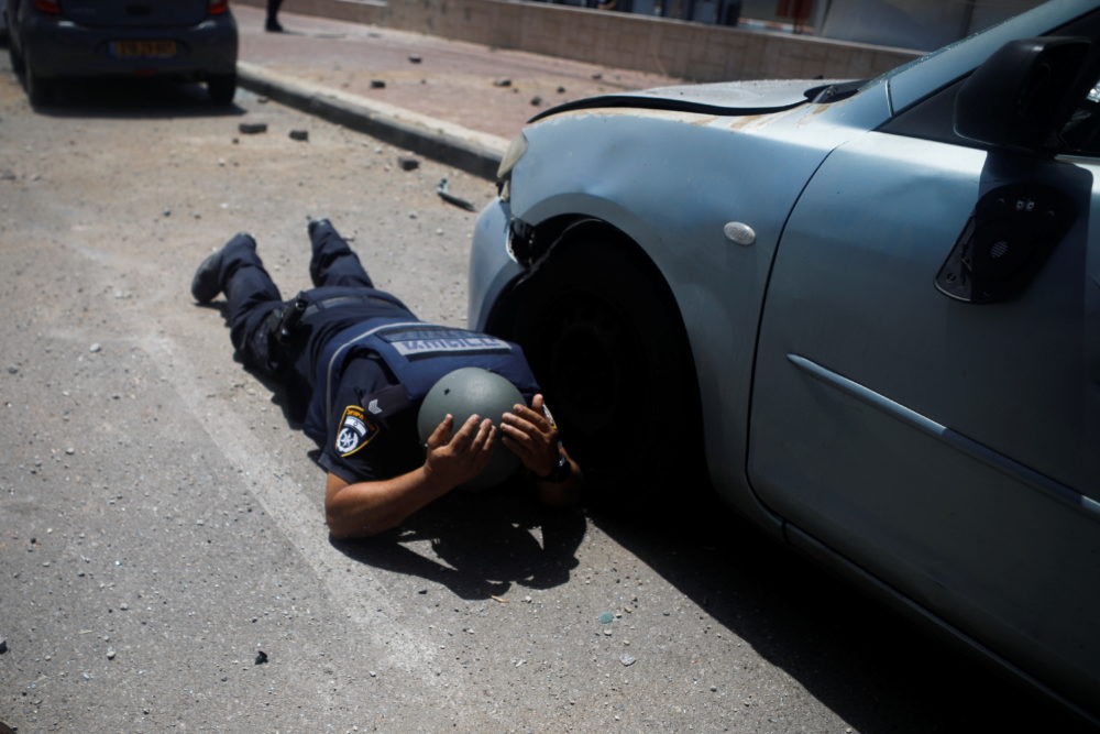 La poli­cía de Israel corrien­do para esca­par de los cohe­tes lan­za­dos des­de Gaza. Fuen­te: REUTERS/​Nir Elias